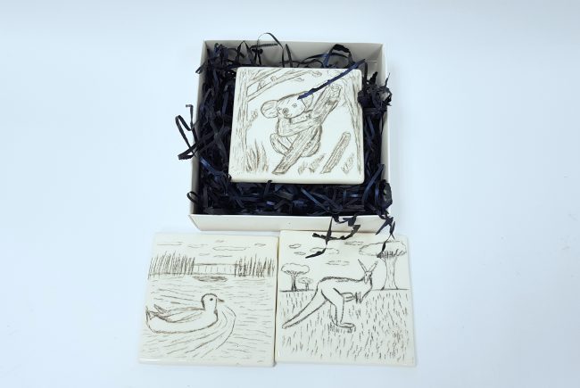 ארבע תחתיות בגודל 10 * 10 כל אחת מאויירות בעבודת יד בנושאים שונים.